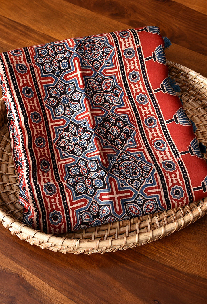 AJRAKH BLACK AND MAROON MODAL SILK DIGITAL PRINTED SAREE