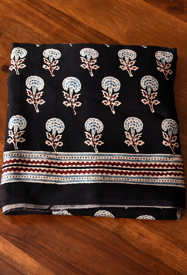 AJRAKH BLACK MODAL SILK DIGITAL PRINTED SAREE