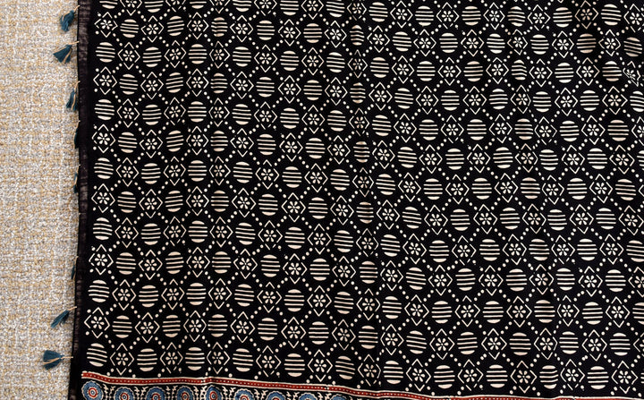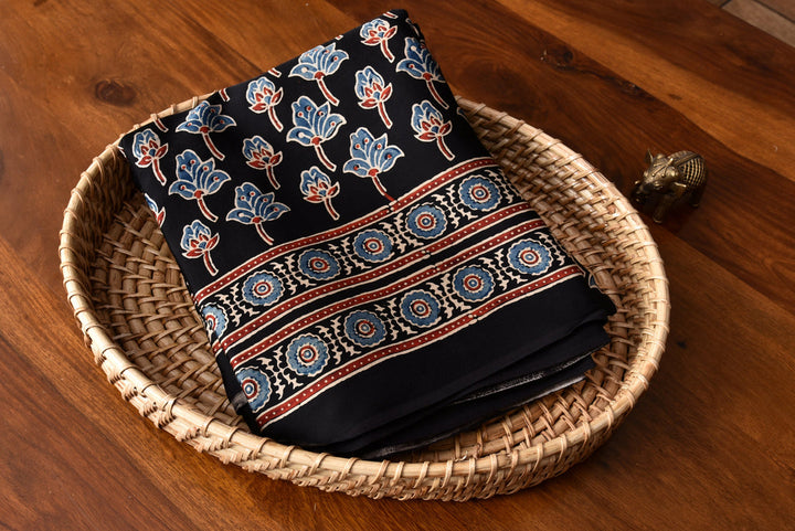 AJRAKH BLACK MODAL SILK DIGITAL PRINTED SAREE
